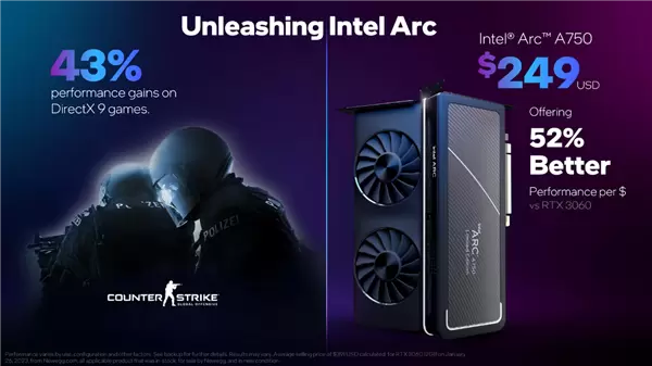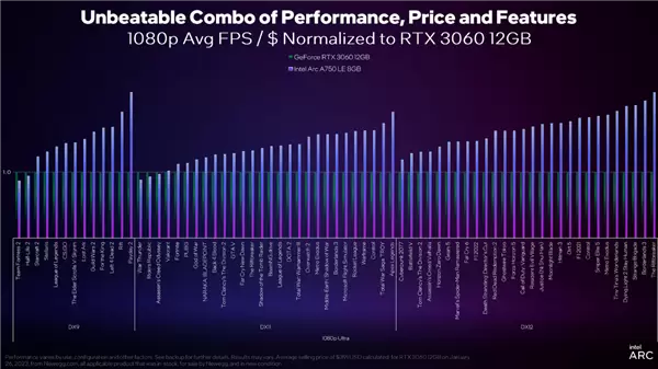 如此一来,按照Intel的说法,Arc A750的性价比相对于RTX 3060可领先多达52%!