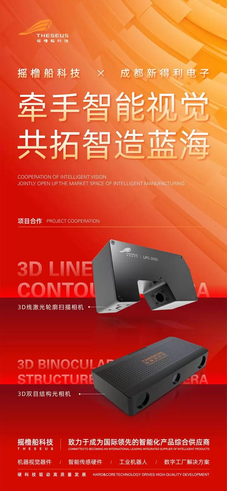 近日,摇橹船科技与成都新得利电子达成合作,以摇橹船科技3D线激光轮廓扫描相机、3D双目结构光相机硬件产品为合作基础,双方将共同推进智能视觉装备在工业智制领域的创新与应用,加速企业数字化,智能化升级。