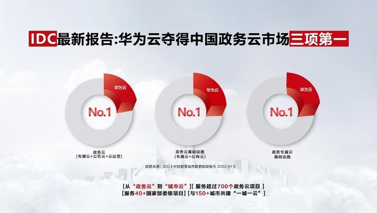 IDC发布中国智慧城市数据跟踪报告 华为云夺得政务云市场三项第一