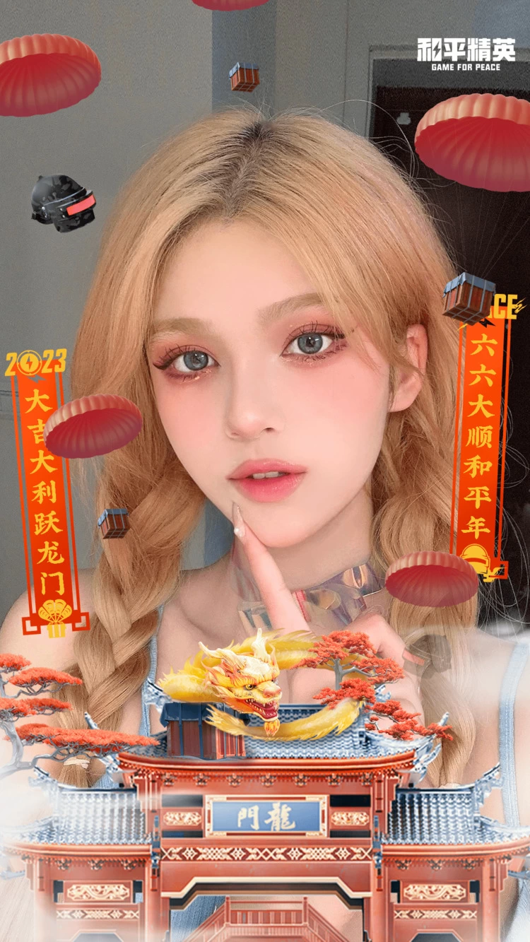 基于春节全民记录晒照的天然心智,新春手游官和平精英也通过美图平台的影像创意定制品牌专属动态海报。年兽、纸鸢、锦鲤等游戏元素搭配新年氛围满满的红色边框,同时画面植入不同的园林元素,一起传递新局跃新年的新年祝愿。