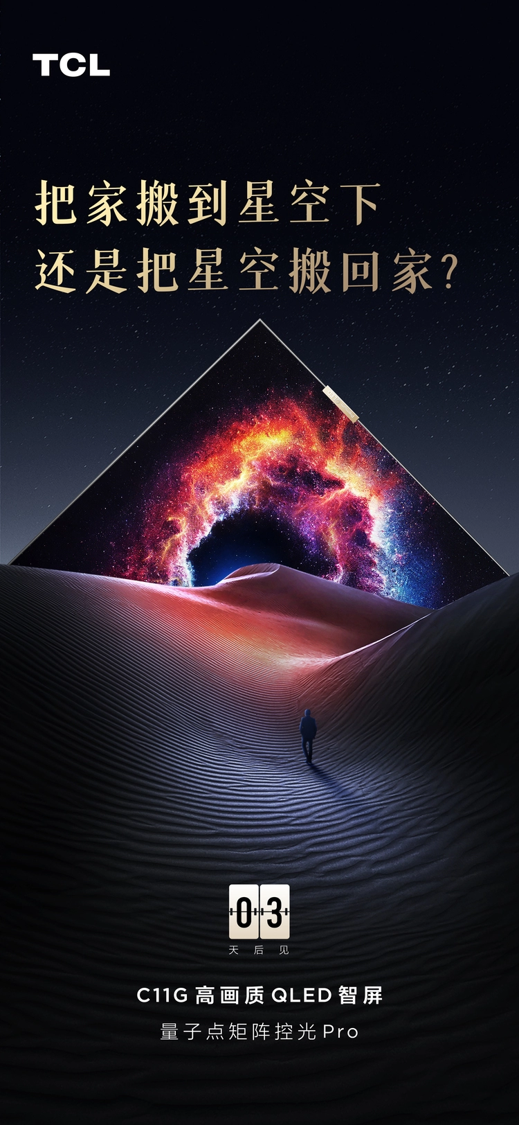 最后小编还想说,这套TCL C11G的倒计时3天海报,一眼看过去科技感拉满!C11G里灿烂的星河跟深邃的黑洞让小编想起了前段时间TCL官宣与《三体》作家刘慈欣的合作,是否会跟《三体》原著一样,蕴含着大量未知的黑科技呢?