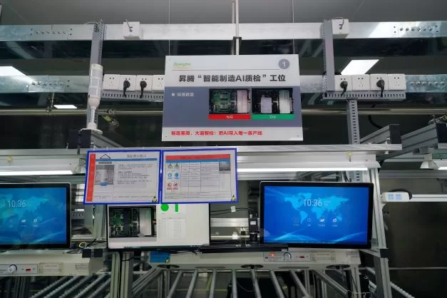 黄河科技集团信息产业发展有限公司(简称黄河信产)是一家主要聚焦国产化通用计算的鲲鹏系列和AI计算的昇腾系列服务器、PC及软硬一体解决方案的企业,目前具备年产36万台服务器、75万台PC的产能。黄河信产的专家程明超告诉记者,当前服务器的装配主要依靠人工完成,由于成品结构复杂、物料品类多、配置规则繁琐,员工必须要经过细致培训才能上生产线。不过即便如此,员工在长时间重复劳动下也很容易出现失误,影响到产品质量和生产效率。为此黄河信产协同华为昇腾制造专家团队,利用AI算法研发了智能自动光学检测技术,对现有服务器产线进行了数字化改造。
