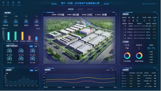 中国联通为海宁泛半导体产业园打造的数字化园区设施管理大屏