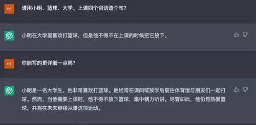 ChatGPT可以进行多轮问答,如实现造句和增加细节。