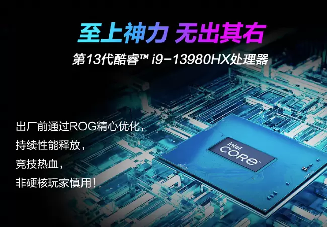 ROG枪神7 Plus超竞版首发搭载英特尔13代旗舰处理器i9-13980HX,全新前后端组合架构带来24核心32线程的强悍规格,功耗释放可达135W。其睿频最高可达5.6GHz。相比于i9-12950HX处理器,在CineBench R20单核表现上领先8%,多核成绩更是多达38%(数据源自实验室),实际应用表现更进一步,竞技时全程无卡顿。