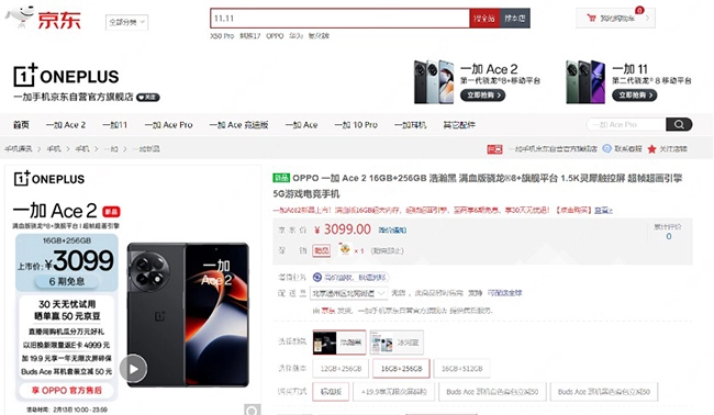 16G超大内存!一加 Ace 2京东正式开售 京东以旧换新至高补贴700元