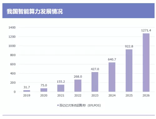 根据IDC、浪潮信息联合发布的《2022-2023中国人工智能计算力发展评估报告》显示,2021年中国智能算力规模达到155.2EFLOPS,预计2026年将达到127.4EFLOPS,年复合增长率达到52.3%。