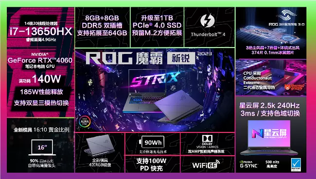 18英寸 ROG星云屏 i9-13980HX 液金导热 16G 1T RTX4060 首发价:12499元