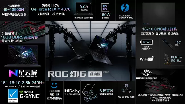 18英寸 ROG星云屏 i9-13980HX 液金导热 16G 1T RTX4070 首发价:14999元