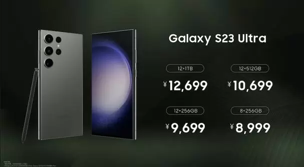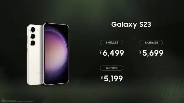 本次三星Galaxy S23系列提供悠远黑、悠雾紫、悠柔白和悠野绿四款配色。其中,三星Galaxy S23 Ultra建议零售价8999元起,至高提供12GB+1TB存储规格;三星Galaxy S23+建议零售价6999元起,提供8GB+256GB、8GB+512GB两种存储规格;三星Galaxy S23建议零售价5199元起,提供8GB+128GB、8GB+256GB、8GB+512GB三种存储规格。