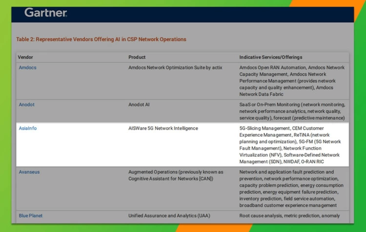 亚信科技再次入选Gartner网络智能化全球主流供应商矩阵 位列该领域典型厂商