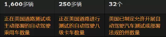 尽管美国联邦层面尚未制定针对自动驾驶汽车行业的法规框架,但目前已有32个州允许测试或部署自动驾驶汽车。其中,有16个州允许在车内未配置安全驾驶员的情况下进行测试或部署。