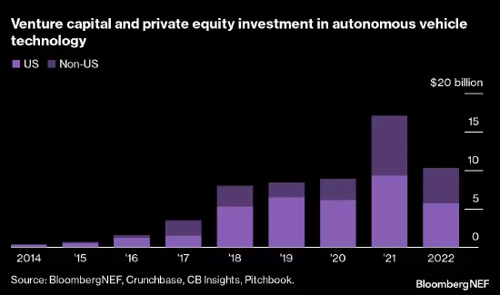 美国在全球自动驾驶汽车技术开发领域一直保持领先地位。2014年至2022年间,美国占该领域私人投资总额的62%。这些投资大部分流向了无人驾驶出租车开发商。如今,美国多达32个州都允许自动驾驶汽车的测试或部署。