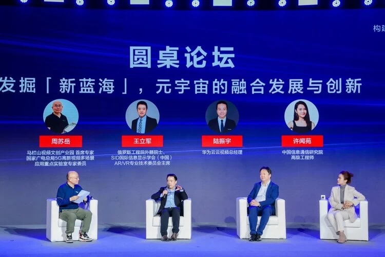 在以《发掘「新蓝海」,元宇宙的融合发展与创新》为主题的圆桌对话环节,马栏山视频文创产业园首席专家、国家广电总局5G高新视频多场景应用重点实验室专家委员周苏岳担任主持人,与王立军、陆振宇、许闻苑三位嘉宾重点探讨了元宇宙的技术创新趋势,以及不同行业与元宇宙融合发展的可能性。
