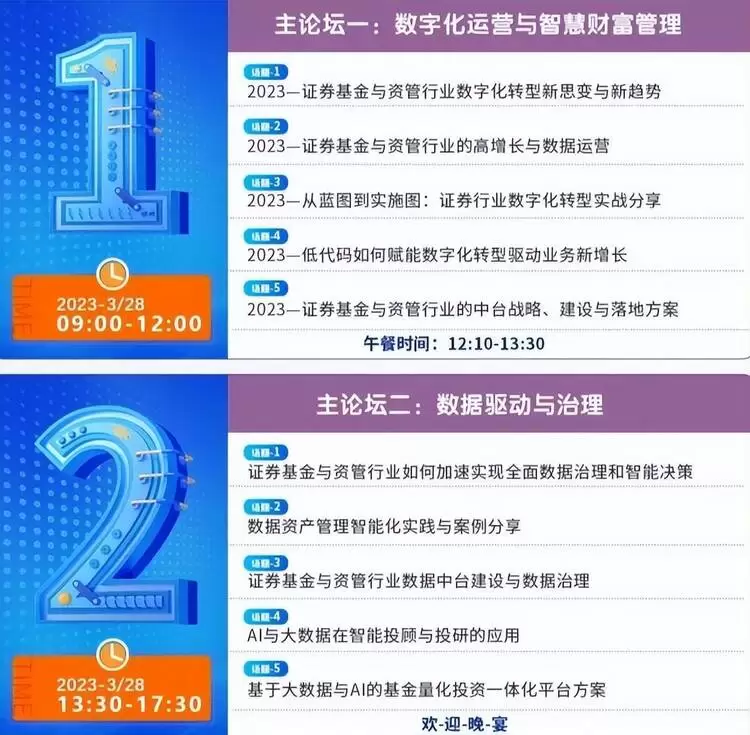 2场主论坛+1场圆桌讨论+18场主题分享,集结了各头部企业大咖,围绕数智化财富管理、数智化营销和数智化运营、智能投顾、智能投研和数据资产管理智能化等诸多话题展开分享。