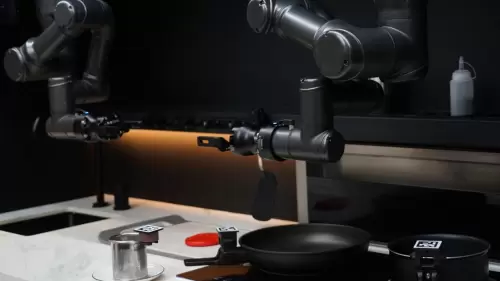 无人厨房系统:通过巧妙设计打造智能场景,借助自我感知决策、精准图像识别视觉、智能运动控制算法和安全防护四大技术,机械臂精准找到所需物品,进行相关的搬运——换锅、炒菜、倒调料等,整套动作流畅流畅。