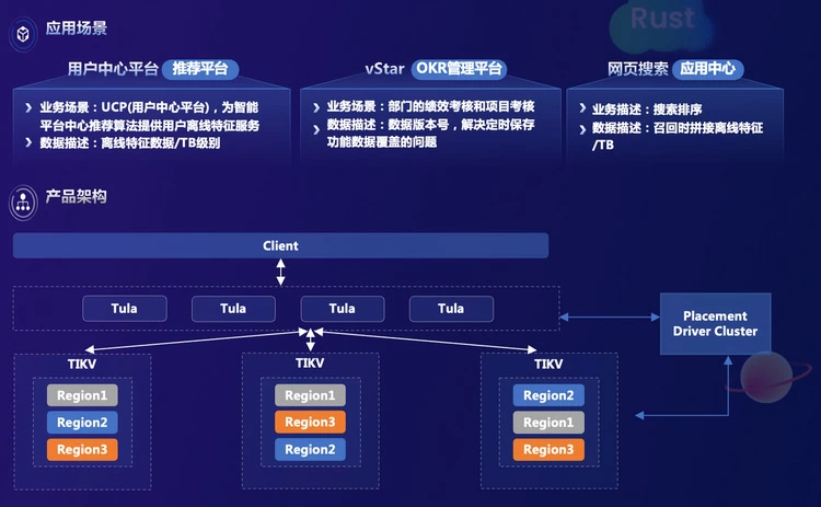 在此之前,vivo 的 NoSQL 数据库产品矩阵中 KV 产品实际上只有 Redis,但 Redis 是基于内存的存储,性能虽然很好,但存在数据无法持久化及成本高等问题。基于此,vivo 基于 TiKV 研发了自己的 NoSQL 数据库。它兼容 Redis 协议,能够以很低的成本进行迁移,可以持久化大规模存储 TB 级别,甚至 PB 级别数据,还具备高性能、水平扩展、高效故障切换、数据安全保证一致性等特点。之所以能做到这些,很大程度上是因为 TiKV 原本就具备了很好的能力,如存储引擎水平扩展能力、高效故障切换能力、数据安全保证能力等。目前,这款 NoSQL 数据库已经在 vivo 内部的推荐平台、内部管理平台、应用中心中应用。