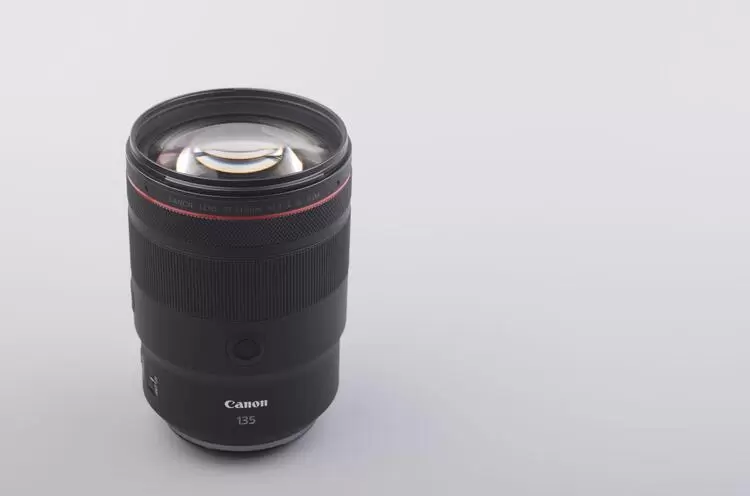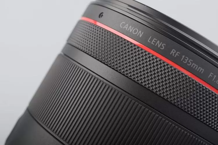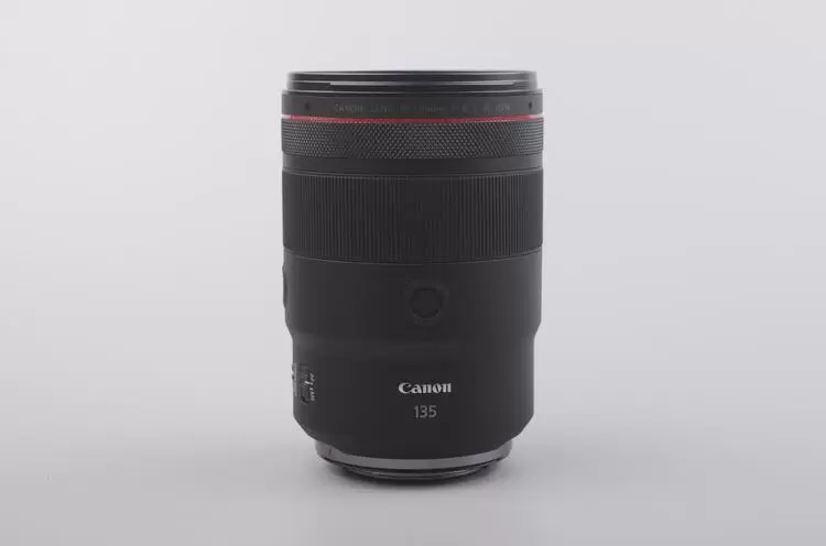 RF135mm F1.8 L IS USM 的外观像“加长版”RF50mm F1.2 L USM。镜头长度比RF100mm F2.8 L MACRO IS USM短(130.3mm VS 148mm),镜头粗细、重量与RF50mm F1.2 L USM相近。考虑到这款镜头搭载光学防抖机构的同时还比FE 135mm F1.8 GM略轻,整体上算考虑了紧凑、轻量化。