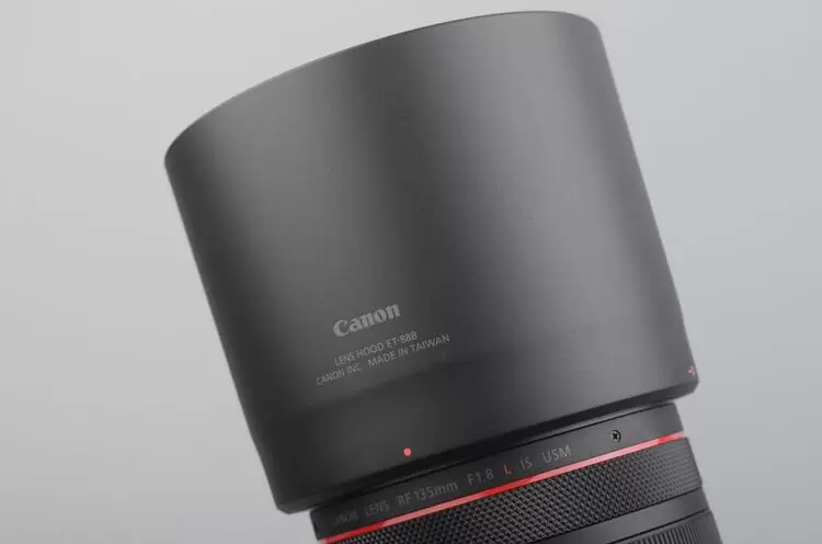RF135mm F1.8 L IS USM搭配“桶型”遮光罩,型号为ET-88B,安装遮光罩后可遮挡不必要的入射光线,抑制鬼影和眩光的产生。