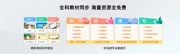 此外,小度光学护眼学习平板还提供跟课本一一对应的海量资源,包含约146种教材,覆盖国内大部分地区。可以让小朋友畅快使用课前内容、课中内容、课后内容,听说读写分项同步训练,事半功倍。据了解,全科教材及资源均已免费开放给用户。