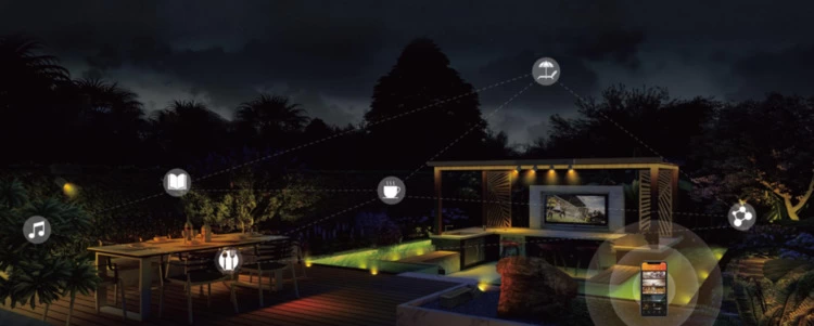 在很多智能家居照明中,大部分人都只是关注到了室内空间照明设计,然而一般独立豪宅和别墅都会配有庭院,庭院作为家居空间的重要场景,不仅承载了家庭日常活动、聚餐、休息、观赏等,其照明的重要性也是不容忽视的。