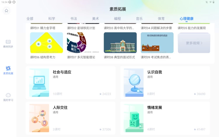 教育的最终目的是人的发展。人工智能等技术可以为学习减负增效,也可以助力实现五育并举。科大讯飞AI学习机一直关注着孩子的健康成长,全面发展。科大讯飞AI学习机提供了800多节素质拓展课程,帮助孩子拓展视野,探索更多可能性。特别是在心理健康方面,上线了社会适应、人际交往和情绪发展等课程,帮助孩子向内认识自己,促进人格的全面发展。