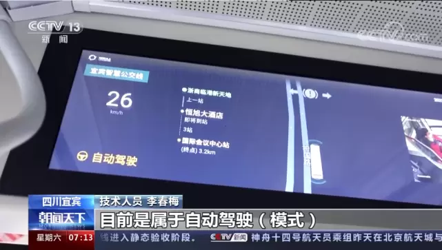 在宜宾黄桷坪大道上,一辆车路协同自动驾驶接驳车正在行驶。从人工驾驶到自动驾驶模式只需一键切换,司机全程充当“安全员”,车身搭载了我国自主研发的第三代智能驾驶系统,装备激光雷达、毫米波雷达,可以与道路两旁隐藏的300多个传感器相结合,实现高清定位和快速识别障碍物等功能。