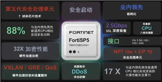 FortiSP5 第五代 7 纳米芯片,集成度更高,功能更强大: