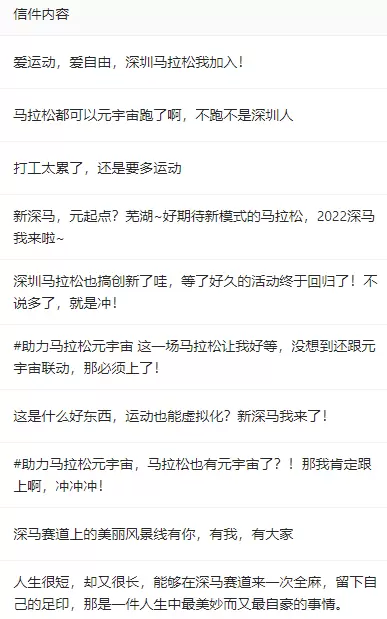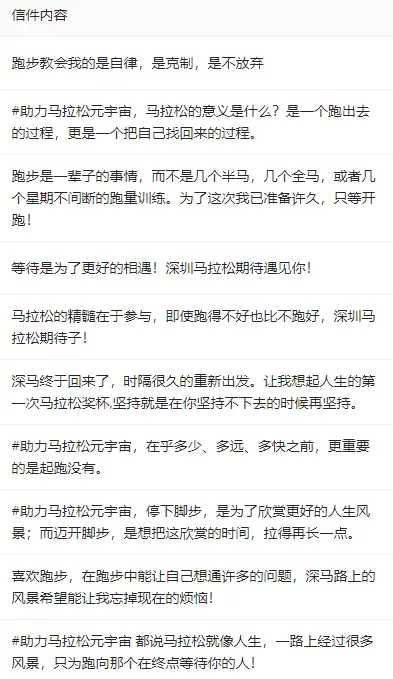 数字宠物助力马拉松活动期间,我们在后台收到了许多朋友对本次马拉松的祝贺信件,以下为部分节选。