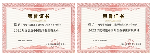 柯尼卡美能达荣获《数字商业时代》“2022年度智造中国数字化创新企业”称号(左图)