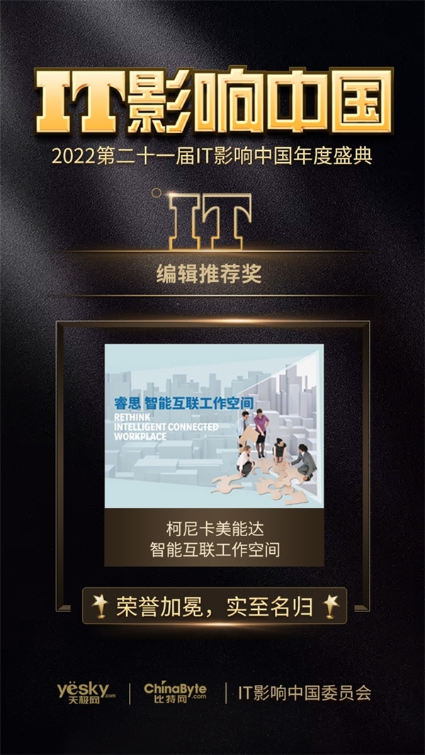 与此同时,柯尼卡美能达倾力打造的ICW,实现了“人people”、“物thing”、“工作空间workplace”之间的有效连接,可为用户提供一站式智慧办公解决方案,全面提升其数字化运营效率。目前,柯尼卡美能达已通过ICW为制造、交通、物流、基建等多个行业用户提供了专业、高效的数字化整合增值服务,ICW也由此荣获天极网“2022年度编辑推荐奖”。