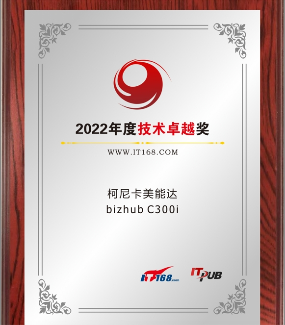 柯尼卡美能达bizhub C300i获IT168“2022年度技术卓越奖”