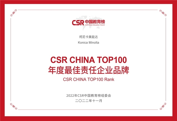 柯尼卡美能达连续第二年获评CSR中国教育榜“年度最佳责任企业品牌”