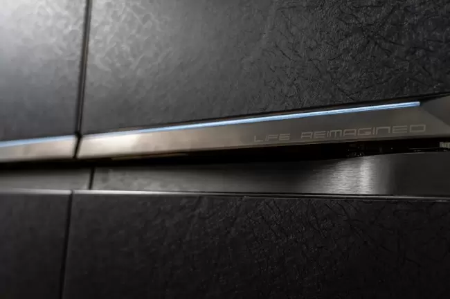 冰箱主体部分采用山河岩SDMI全息立体雕刻工艺,现代工艺与传统水墨写意风格都被协调融为一体,从不规则的镂空雕刻纹理中仿佛看到了山峦叠嶂的壮丽景象。令人眼前一亮的是,这款冰箱腰线处加入了智慧感应呼吸灯,当用户走近冰箱时会自动亮起,极具科技感,而高贵典雅的气质能与现代厨房风格融为一体,令人赏心悦目。