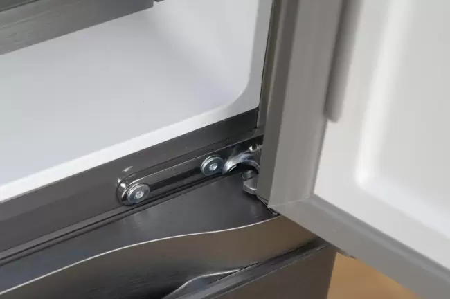第一个问题,我们经过实际测试发现,这款冰箱借助星迹双轴变轨铰链能够实现108°的开门幅度,正常拿取果蔬食材完全不会产生影响,也不会出现磕碰周边橱柜的情况。
