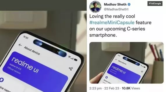 近日,realme 副总裁、国际事业群总裁 Madhav Sheth 不小心在推特上发了一张Realme克隆苹果“灵动岛”功能的截图,其称之为“MiniCapsule”。