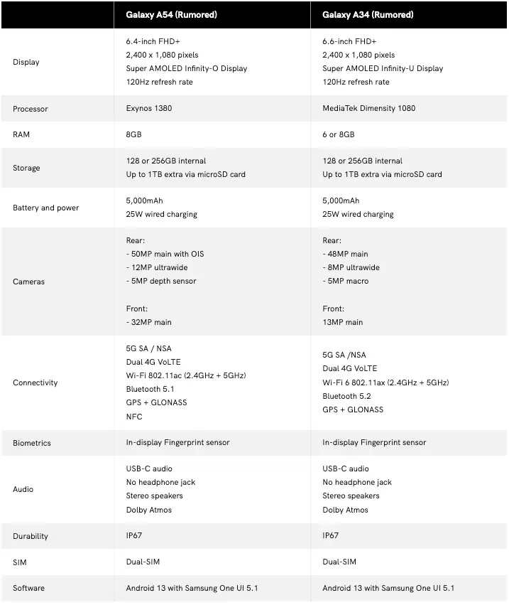 三星Galaxy A54和Galaxy A34这两款中档手机将很可能是该公司下一步即将发布的两款手机,近日这两款手机的相关参数已经流出。