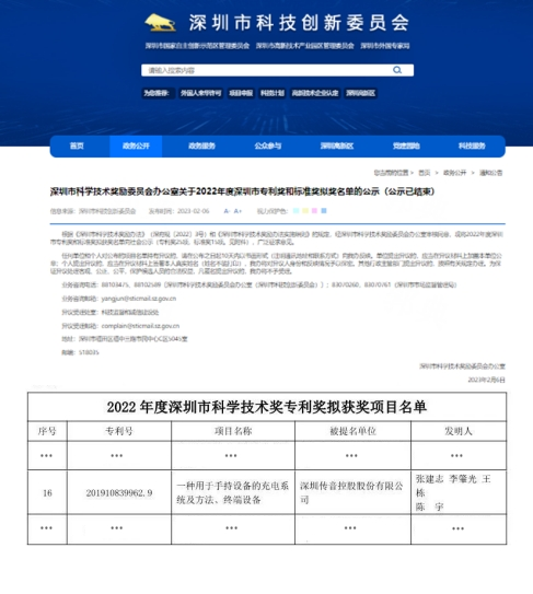 日前,传音的“一种用于手持设备的充电系统及方法、终端设备”项目凭借技术的先进性和创新性,荣获深圳市科学技术奖励委员会办公室颁发的2022年度深圳市科学技术奖专利奖。