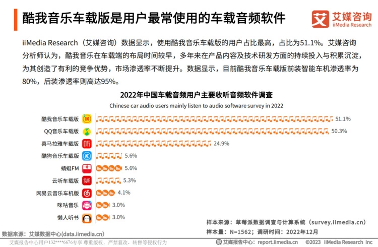 艾媒咨询《2022年中国车载音乐前沿科技研究报告》显示,资源多、音质好是车载音乐用户的主要诉求,用户甚至更偏向于收听接近原始录音品质的音乐。酷我音乐提供的听感更真实,更具有层次感和空间感的音乐能够让用户在座驾内的音乐体验得到质的提升,一经推出便备受欢迎。可见无论是外部的音乐版权,还是内部打造的高品质音源,精品的内容始终都是平台的重要基石,也是平台可持续发展的内生力量。