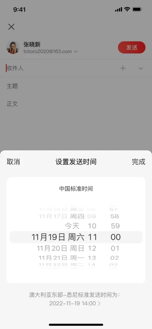 网易邮箱大师对用户关注的核心场景进行深度优化,上线了领先于绝大多数国内外邮件服务商的功能。针对跨时区交流的用户,新增了定时发送的时区换算能力。在用户选择定时发送后,若有需要,可以进行时区换算。如用户选择在美国时间早上9点发送邮件,网易邮箱大师会自动换算成对应的中国时间,并按照这个时间发送邮件,免去了用户自行换算时区的烦恼。