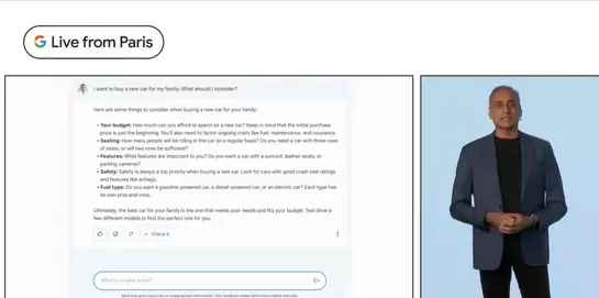 在发布会上,谷歌更为详细地介绍了Bard模型:“你可以和它互动、探索复杂的主题、实时协作,并获得创造性的新想法。”其中一处升级是:用户可以直接用自然语言提问,而不是用关键词搜索。