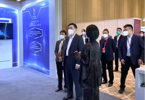 黄埔区区长冼区陪同工信部领导参观我司展位,品牌部同事向各位领导介绍了由BITONE设计制作的宝马虚拟工厂、在希壤元宇宙搭建的一站式沉浸体验基地——BITONE SPACE、“登临地球第三极”珠穆朗玛峰北坡VR沉浸式体验项目以及虚拟人相关项目等。