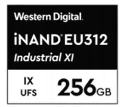 针对工业级场景应用,西部数据的主打产品是iNAND IX EM132嵌入式闪存盘和iNAND IX EU312 UFS EFD,前者属于eMMC,后者属于UFS。