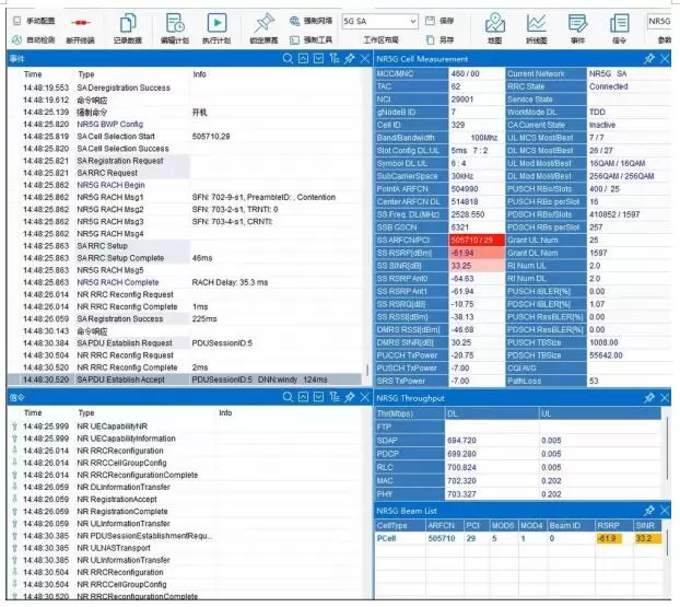 此外,东方国信小基站系统在测试过程中进一步展示了其“小身材、高性能”的特点,也验证了比科奇PC802 PHYSoC强大的in-line硬件加速能力:在支持5G小区切换、4G/5G异系统互操作方面表现优异,其用户面时延可实现10ms以下;在网络吞吐率测试中,在7D2U时隙配置下,下行速率可达700Mbps,上行速率可达200Mbps。
