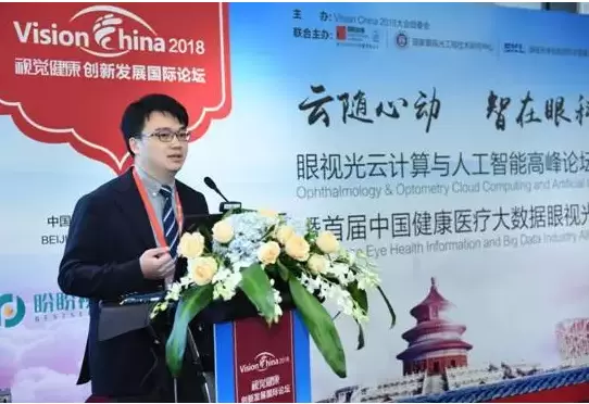 Airdoc公司副总裁陈羽中分享了“计算机视觉与人类视觉”,介绍了生物视觉与计算机视觉的概念和机理,并分享了屈光度发育预测、视力变化预测、角膜地形图的圆锥角膜判断与预测的成果。