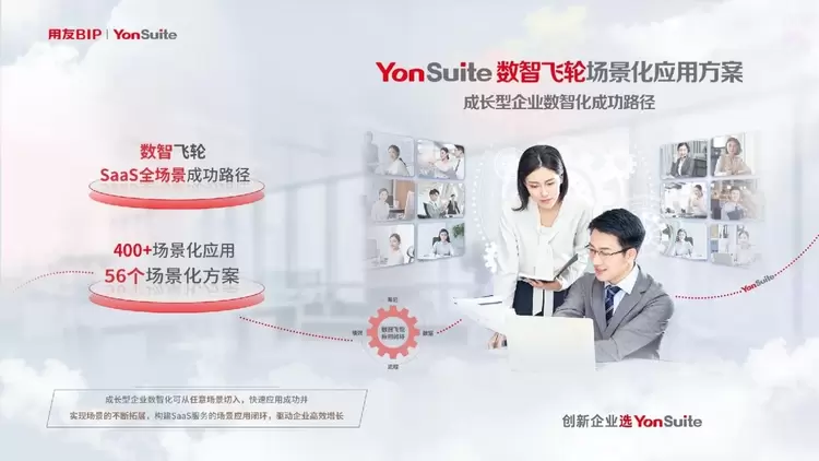 YonSuite数智飞轮的场景化应用模式满足成长型企业数智化可从任意场景切入,快速应用成功并实现场景的不断拓展,打造出一个个云服务的场景业务闭环,如飞轮一般驱动企业高效增长,树立了SaaS应用客户成功的新模式,