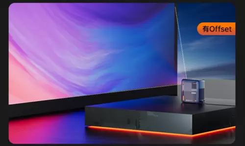 偏轴设计在DLP投影产品中很常见,但在此前并没有厂商将其应用到LCD投影中。一个重要原因在于LCD屏幕尺寸通常为3~5英寸左右,普遍较大,如果做成偏轴设计会让镜头直径变大,从而导致机身变大,成本增加。再者,做成偏轴之后,画面整体上移的同时,边缘画面部分距离镜头中心变远,会使得中心画面清晰,边沿画面模糊,画质不均匀,十分影响观影体验。