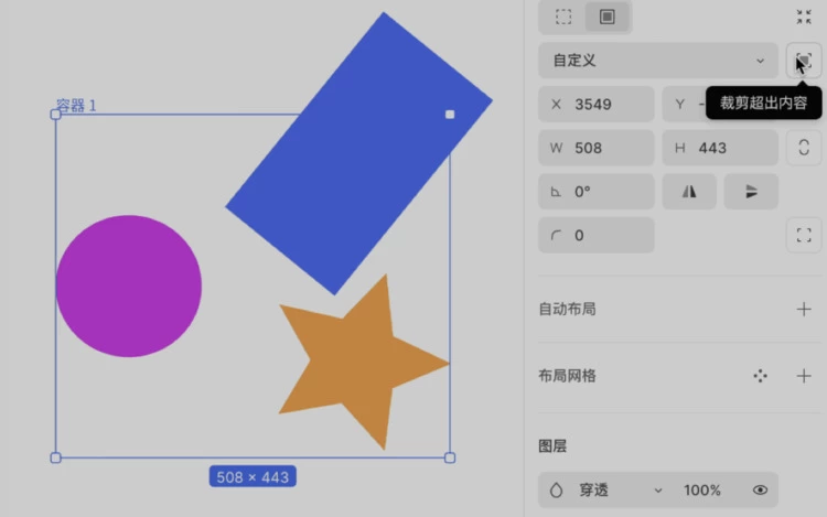 对于「容器」来说,当其子元素超出容器边界时,使用自带的超出剪裁功能即可快速实现裁切效果。