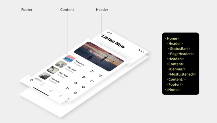 比如,整个页面大致可以分为 Header、Content 和 Footer 三个模块,每个模块又可以分为更小的模块,比如 Header 又可以分为 StatusBar (状态栏)和 PageHeader (页面顶栏)等,如此一来,整个代码结构清晰分明,维护方便。