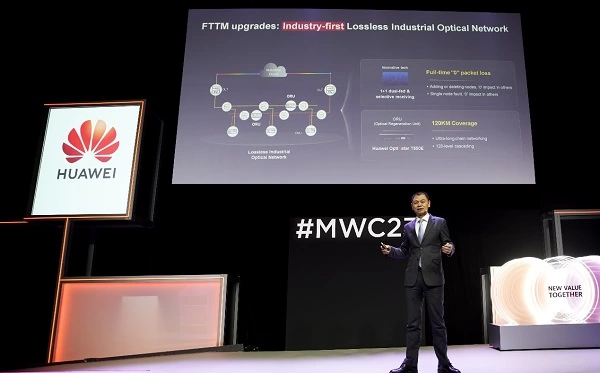 2023年世界移动大会(MWC2023)期间,在“F5G演进,释放行业绿色数字生产力”论坛上,华为全新升级全光工业网解决方案,发布了基于F5G(第五代固定网络)的业界首个无损工业光网解决方案,打造超高可靠的工业网络,助力工业生产提质增效。